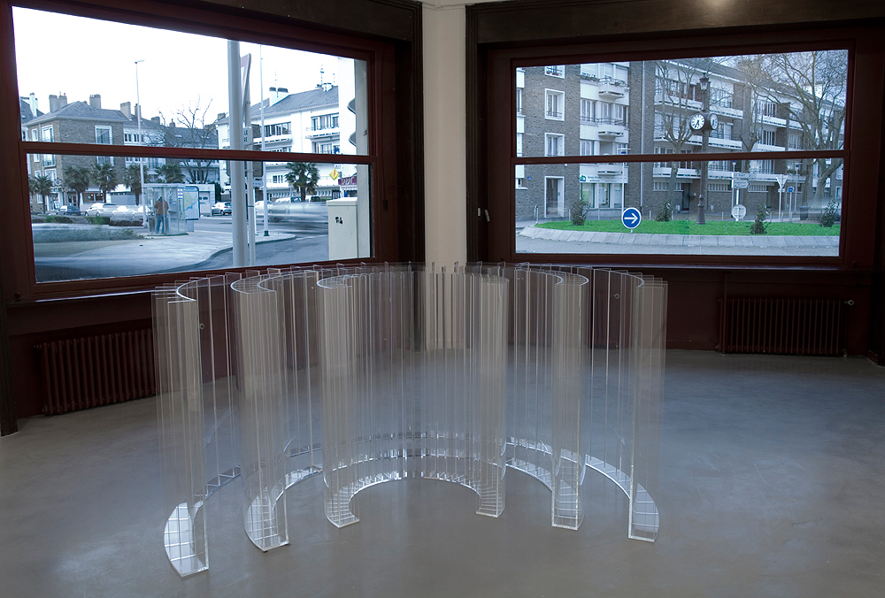 Je m’intéresse à la combinaison de l’abstraction et du sujet pris dans le réel. Les tout premiers travaux que j’ai montrés en 1989 reprennent le dessin d’une barrière, Que l’esprit ajoute, ou d’une hotte de cuisine, Des idées. À ce moment-là, je comprenais confusément ce que j’avais produit, mais c’était trop vague, aussi me suis-je inventé une règle du jeu pour construire des modèles de sculptures à partir de ce que je voyais autour de moi. Je me suis intéressée aux formes les plus élémentaires liées à la question de la sculpture : matière, couleur, moulage, dessin etc. Ce qui a produit Face-à-main en 1990, c’était le premier ensemble de travaux ayant une relation entre eux. Aujourd’hui je regarde plus loin, je n’ai plus de règle, et je désire toujours plus de liberté dans le traitement des idées, des formes, des matériaux.