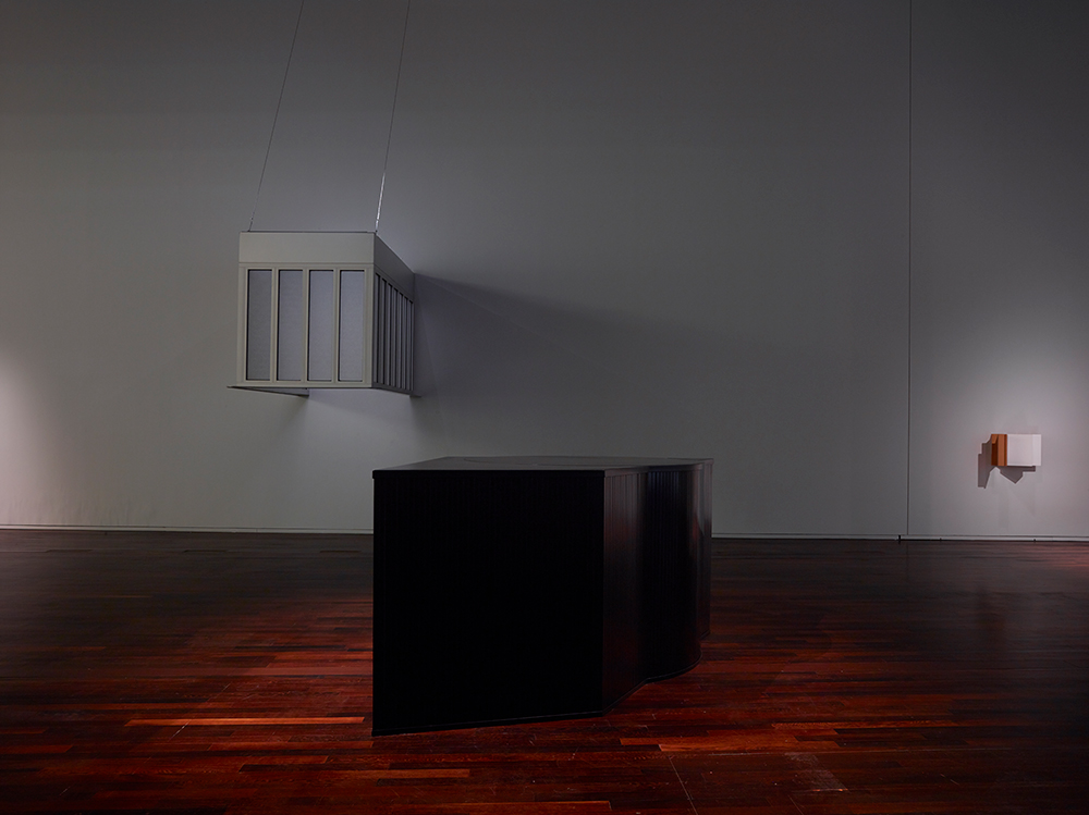 Nous avons élaboré plusieurs hypothèses, plusieurs scenarii. Nous avons fait des choix. « Nous nous sommes concentrés sur des sculptures détachées de leur contexte de réalisation, elles sont prélevées dans les séries Vie privée, Sept pièces faciles, Night Roofline ou Face-à-main. Les contraintes matérielles et personnelles sont capitales dans le choix, la création, l’orientation conceptuelle d’une exposition. » Et avons opté pour un regard rétrospectif, privilégiant les œuvres autonomes, posées là, comme nonchalamment disposées, arrangement dandy, qui réfléchissent la question du lieu, orchestrent le déplacement. Elle dit : « J’imagine les œuvres un peu comme les pièces d’un billard électrique. L’exposition se vit par rebond d’une pièce à l’autre. »
